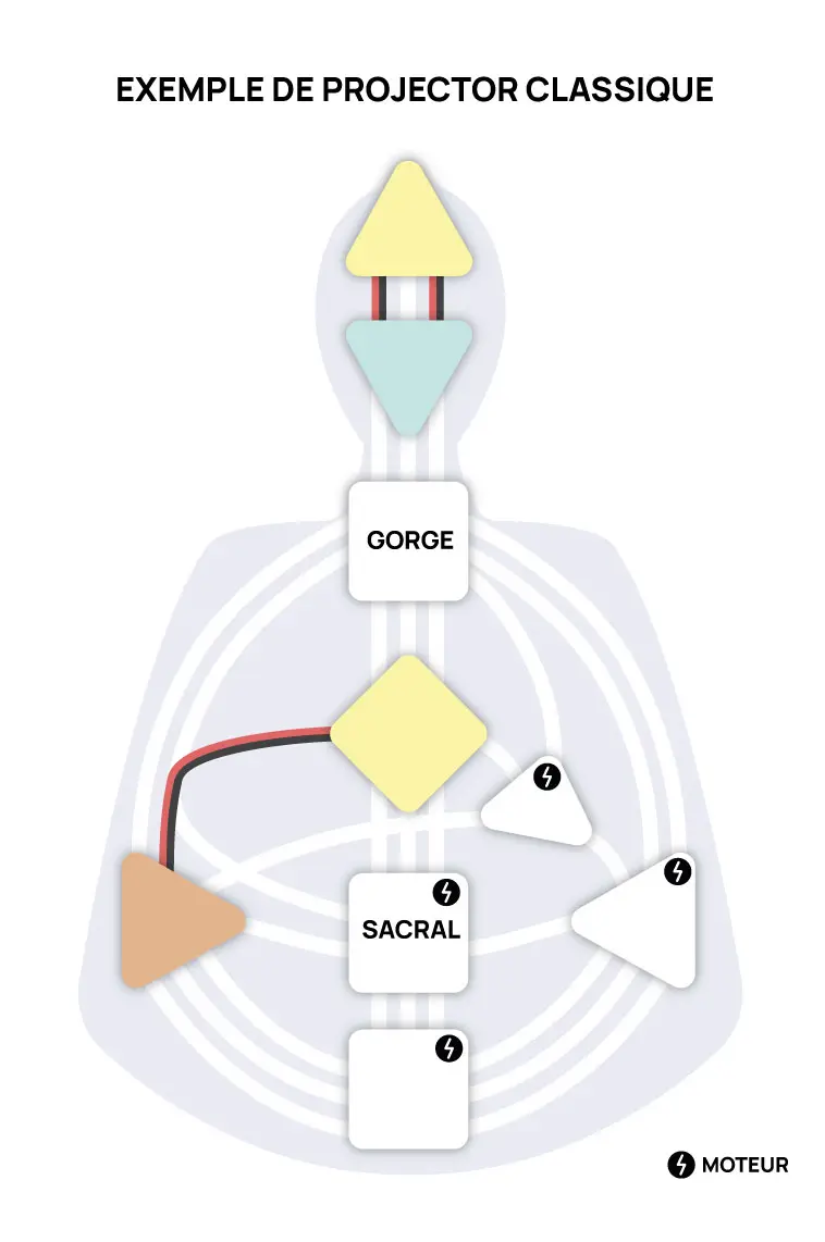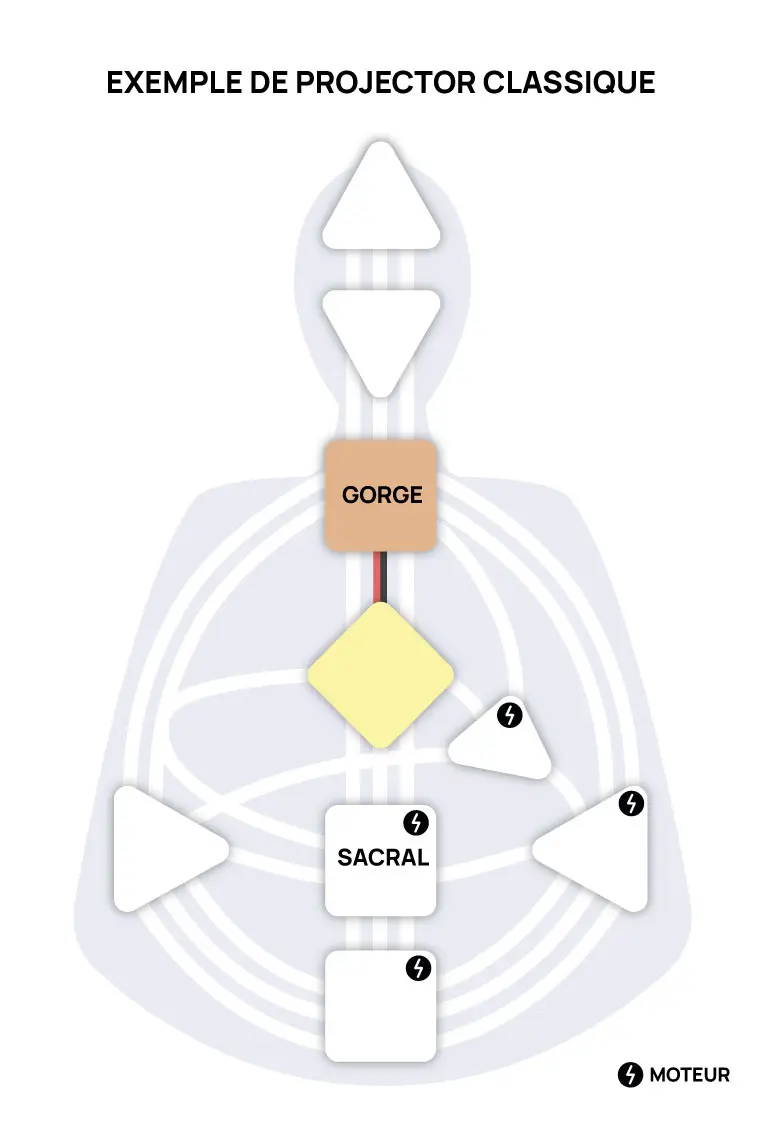 Définition du Type Projector : Sacral indéfini avec au moins deux centres définis, sans moteur lié à la gorge