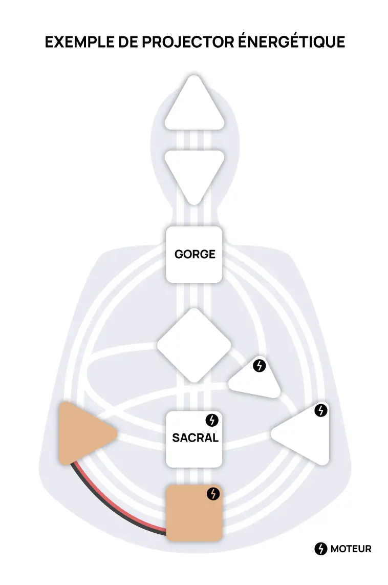 Projector énergétique : Sacral indéfini, au moins un moteur défini, pas de moteur relié à la Gorge